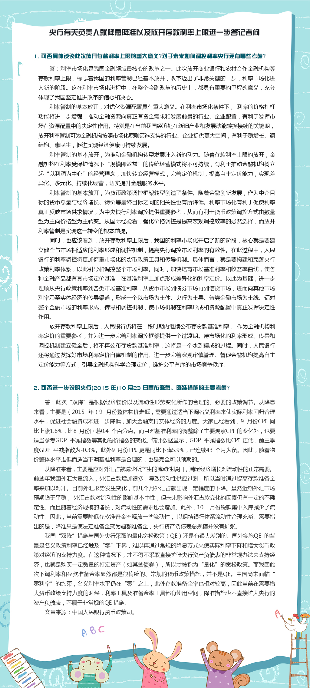 央行有关负责人就降息降准以及放开存款利率上限进一步答记者问