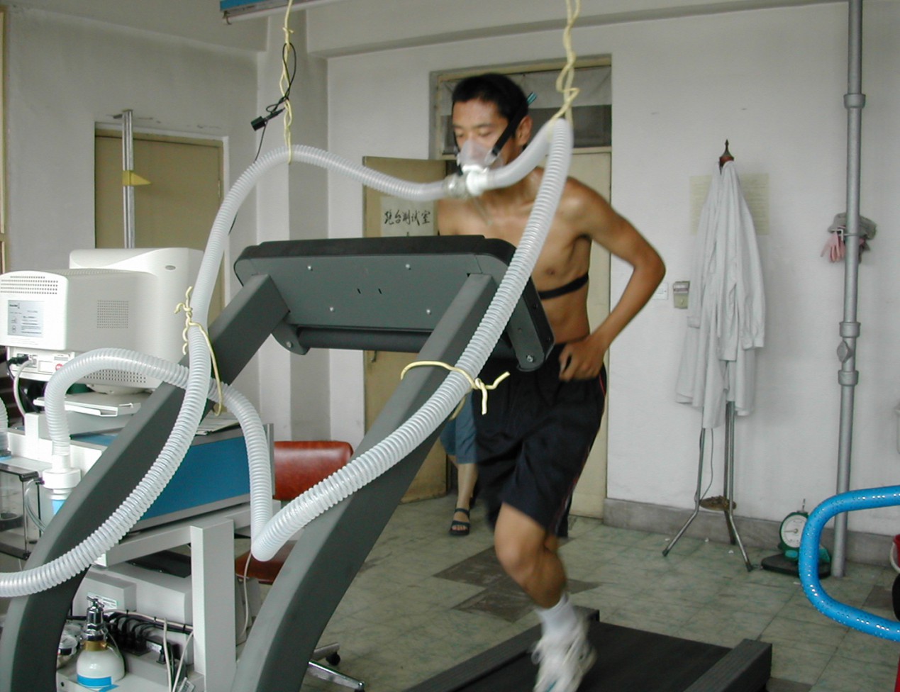 最大摄氧量的直接测定法:通常在实验室条件下,让受试者在一定的运动器械(跑台、功率自行车)上进行逐级递增负荷运动实验测定其摄氧量。判定标准: