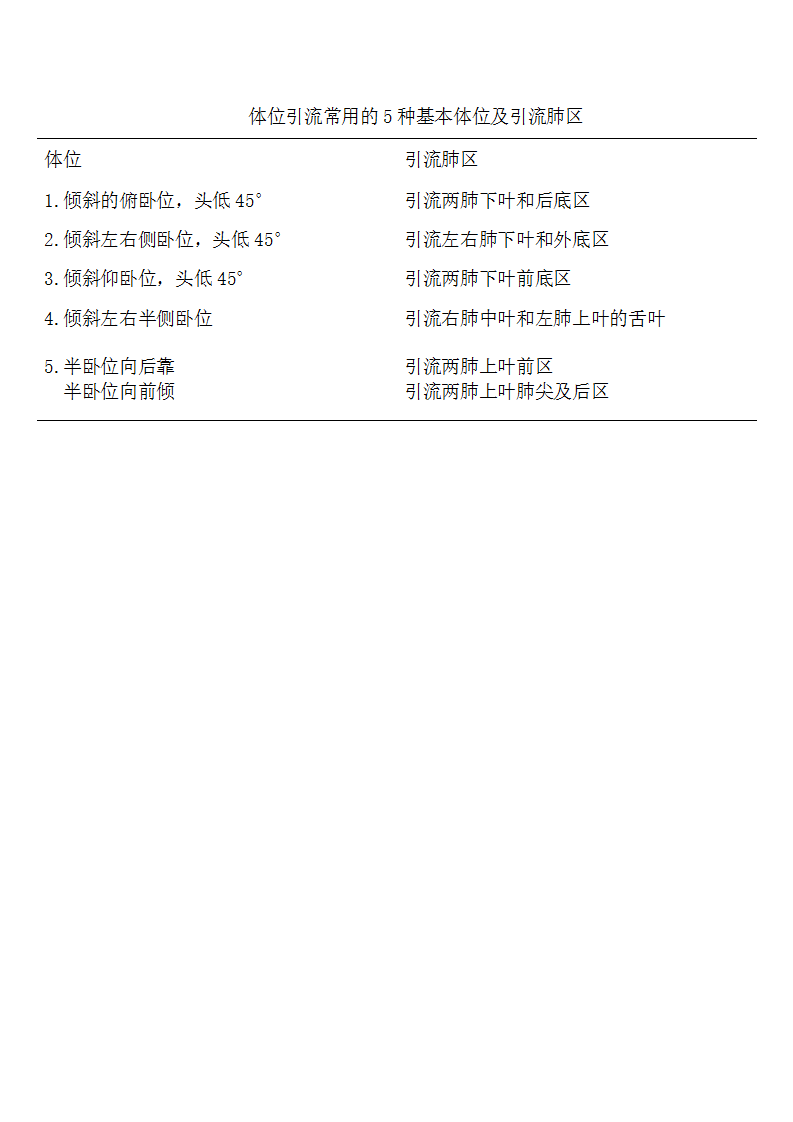体位引流常用的5种基本体位及引流肺区
