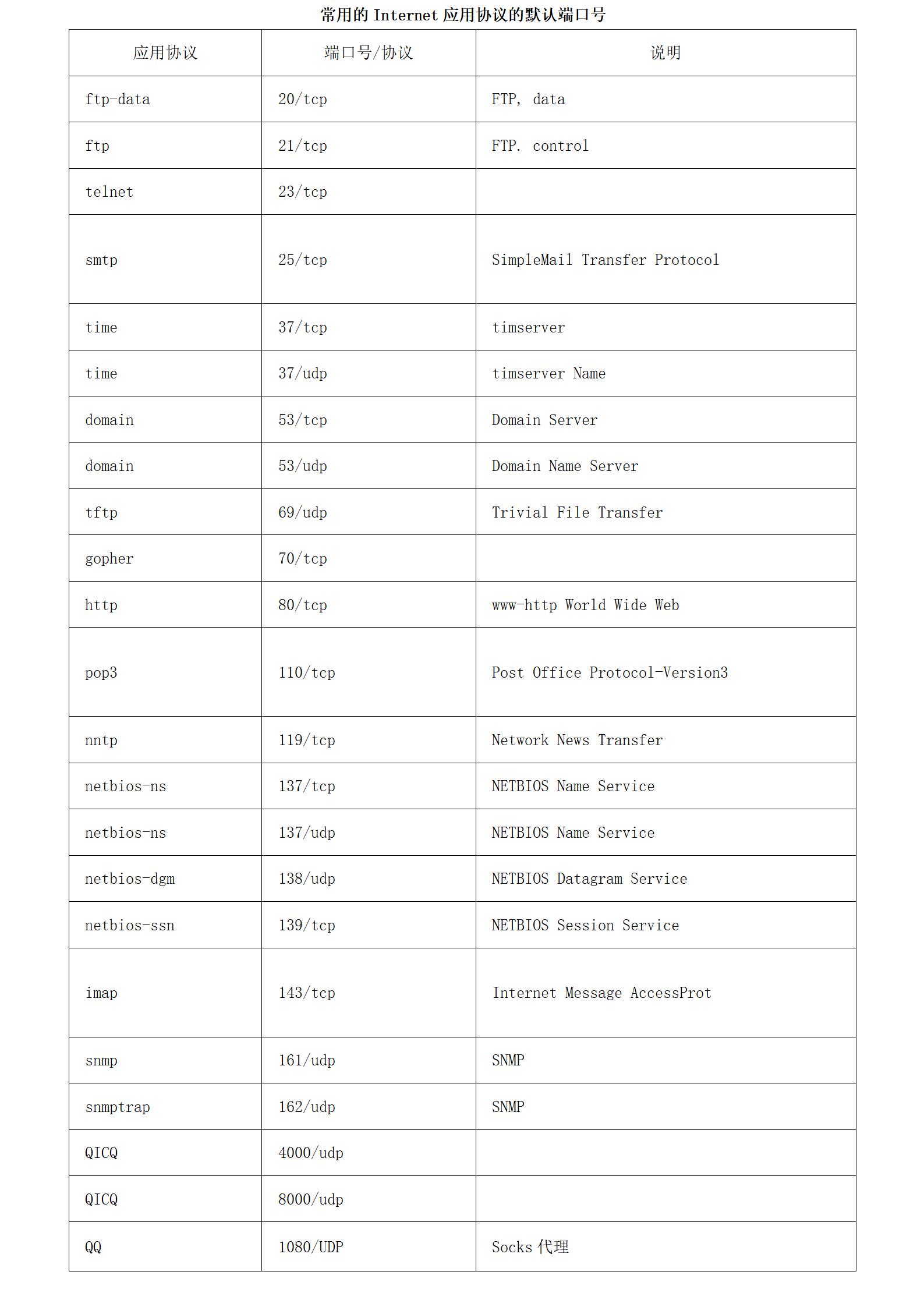 P47-常用的Internet应用协议的默认端口号