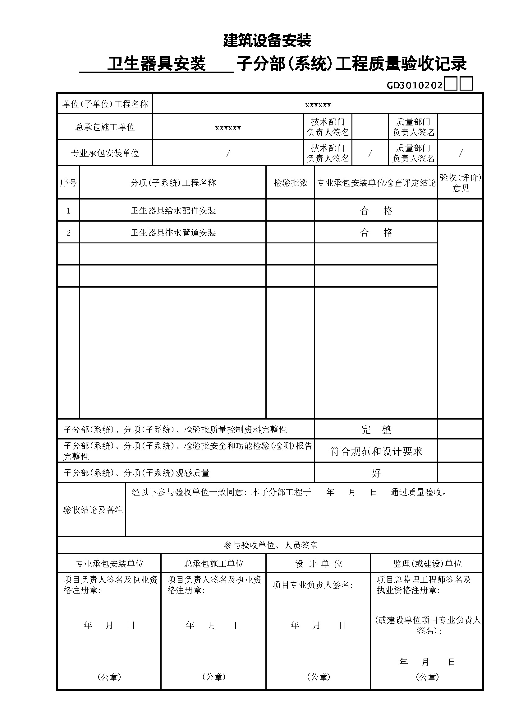P162-分部、子分部工程质量验收记录