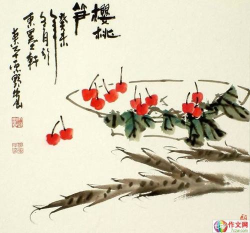 4-1.樱桃图水墨作品欣赏