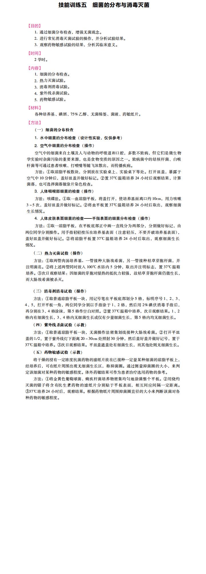 技能训练五 细菌的分布与消毒灭菌
