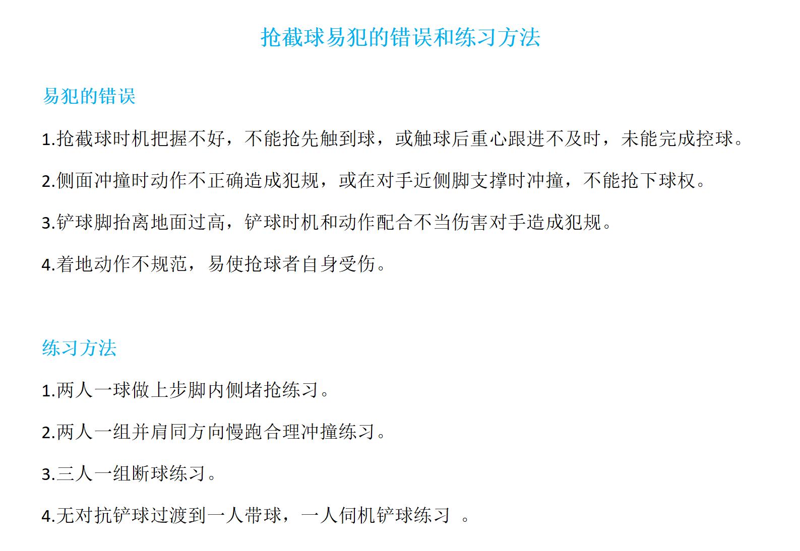 抢截球易犯的错误和练习方法