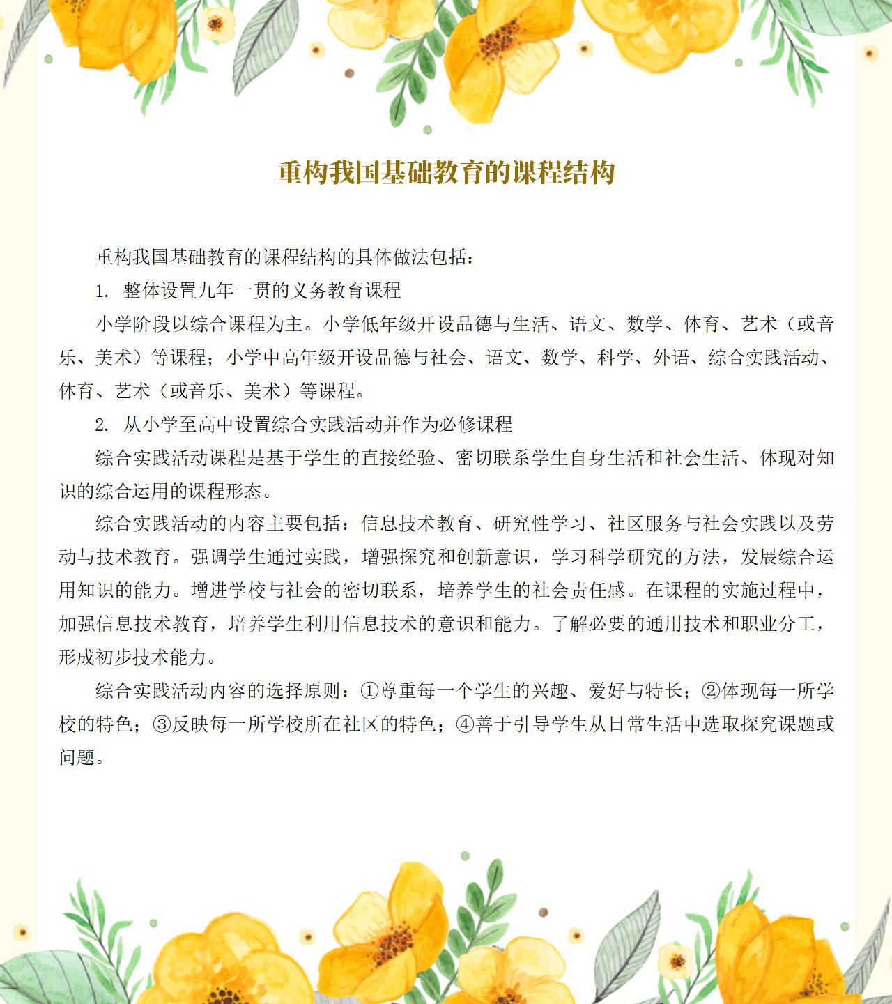 重构我国基础教育的课程结构