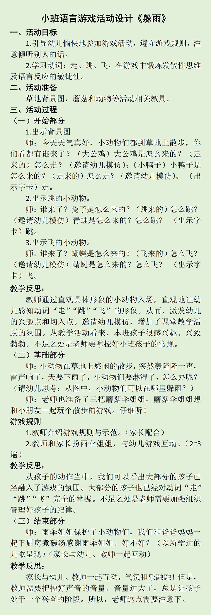 小班语言游戏活动设计《躲雨》
