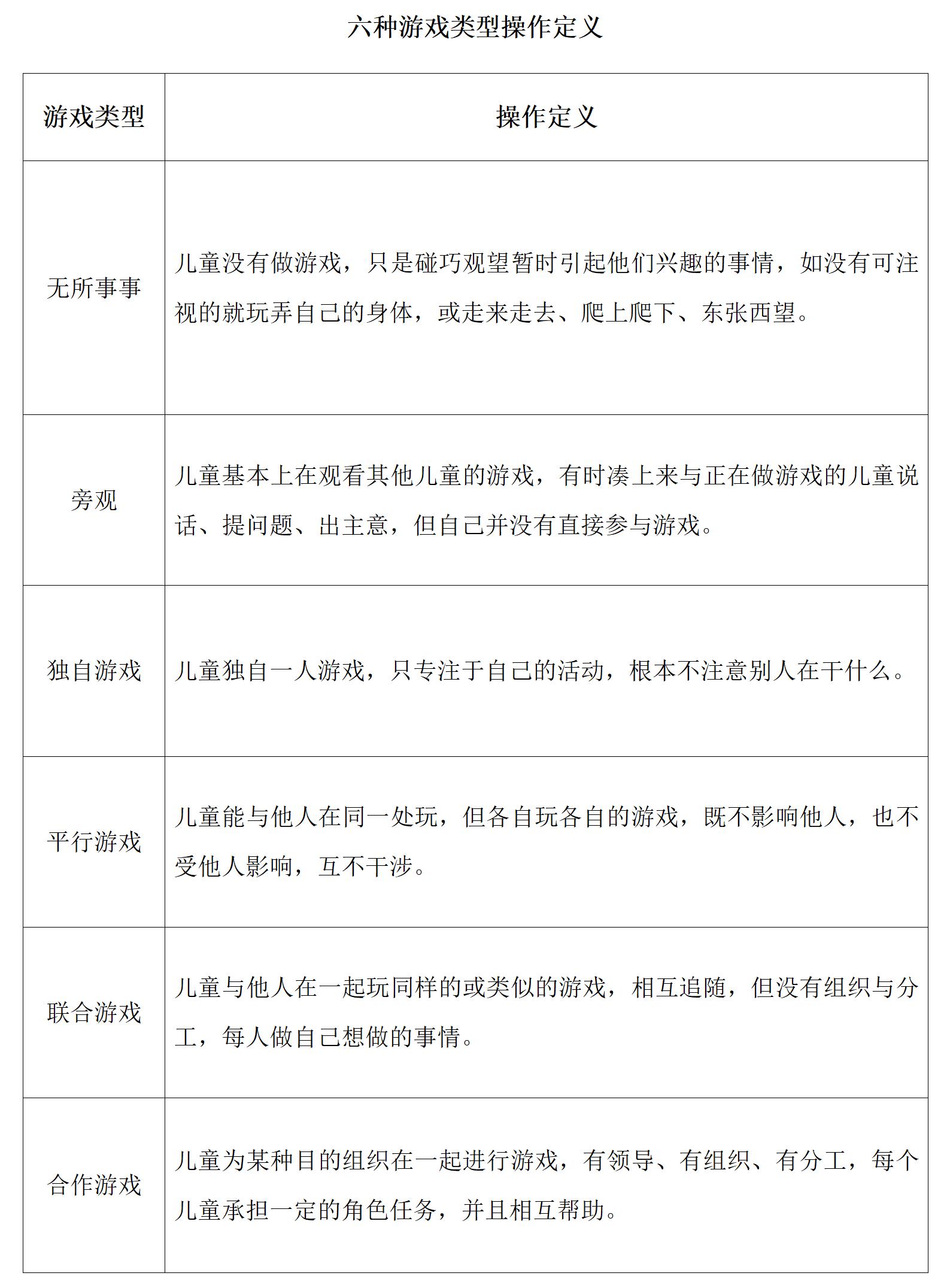 六种游戏类型操作定义