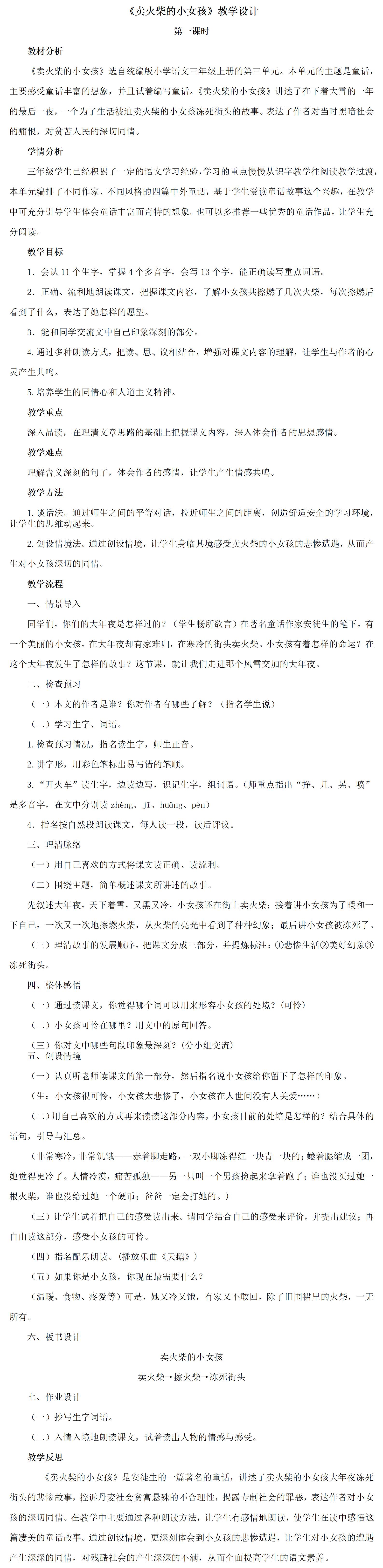 《卖火柴的小女孩》教学设计