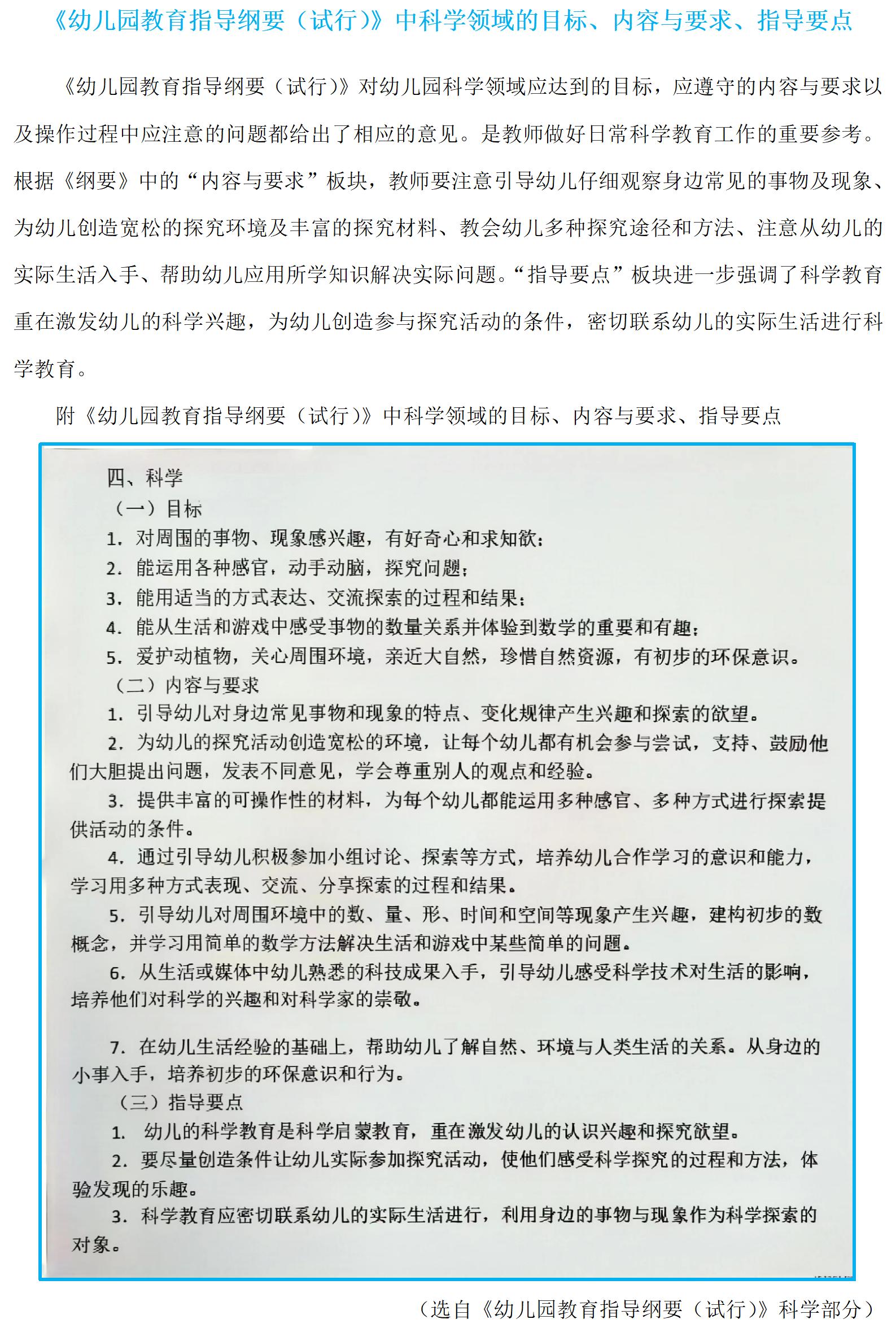 《幼儿园教育指导纲要(试行)》中科学领域的目标、内容与要求、指导要点